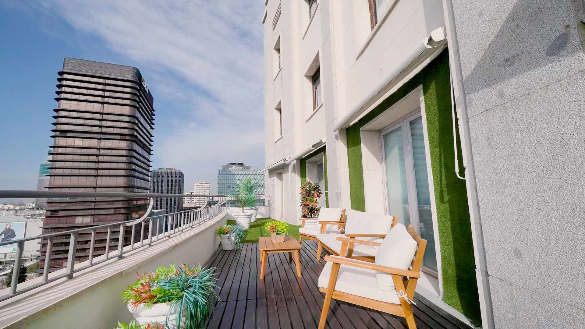 Por otro lado, en la planta 13 encontrarás nuestras consultas de enfermería -donde te realizaremos tus pruebas preoperatorias y revisiones postquirúrgicas. La parte favorita de nuestros pacientes se encuentra justo aquí: se trata de nuestra terraza panorámica con vistas 360, donde podrás disfrutar del skyline madrileño mientras disfrutas de un café o un refrigerio de cortesía.
