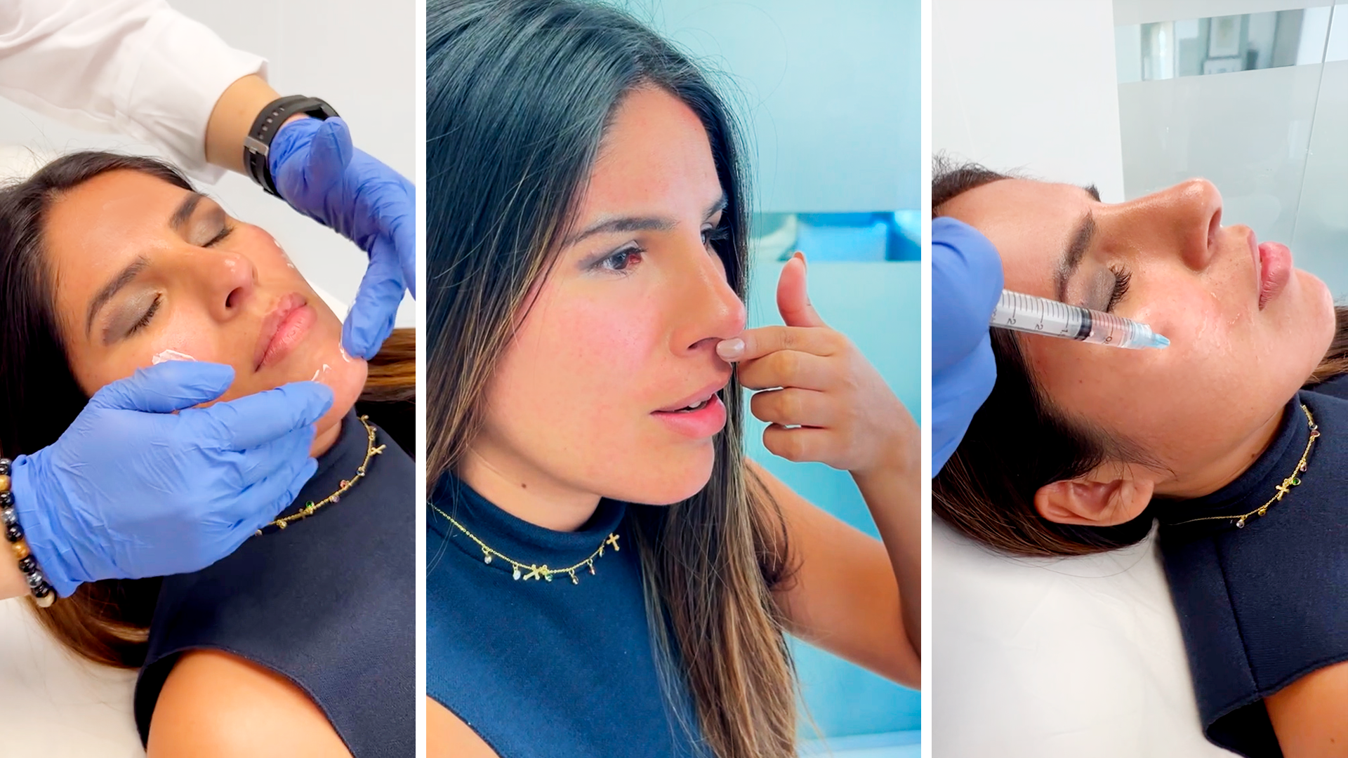 La doctora procedía a realizarle un diseño personalizado de nariz a través de una técnica especial de rinomodelación, procedimiento en el que solo remodelaría la punta y la parte alta con infiltraciones de ácido hialurónico.