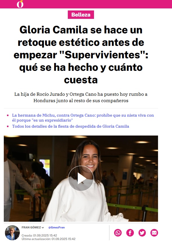En LA RAZÓN: Gloria Camila se hace un retoque estético antes de empezar “Supervivientes”- qué se ha hecho y cuánto cuesta