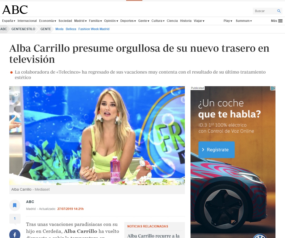 LA VANGUARDIA: ALBA CARRILLO ESTRENA GLÚTEOS