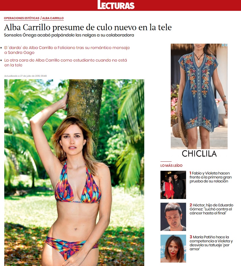 LECTURAS: ALBA CARRILLO PRESUME DE CULO NUEVO EN LA TELE