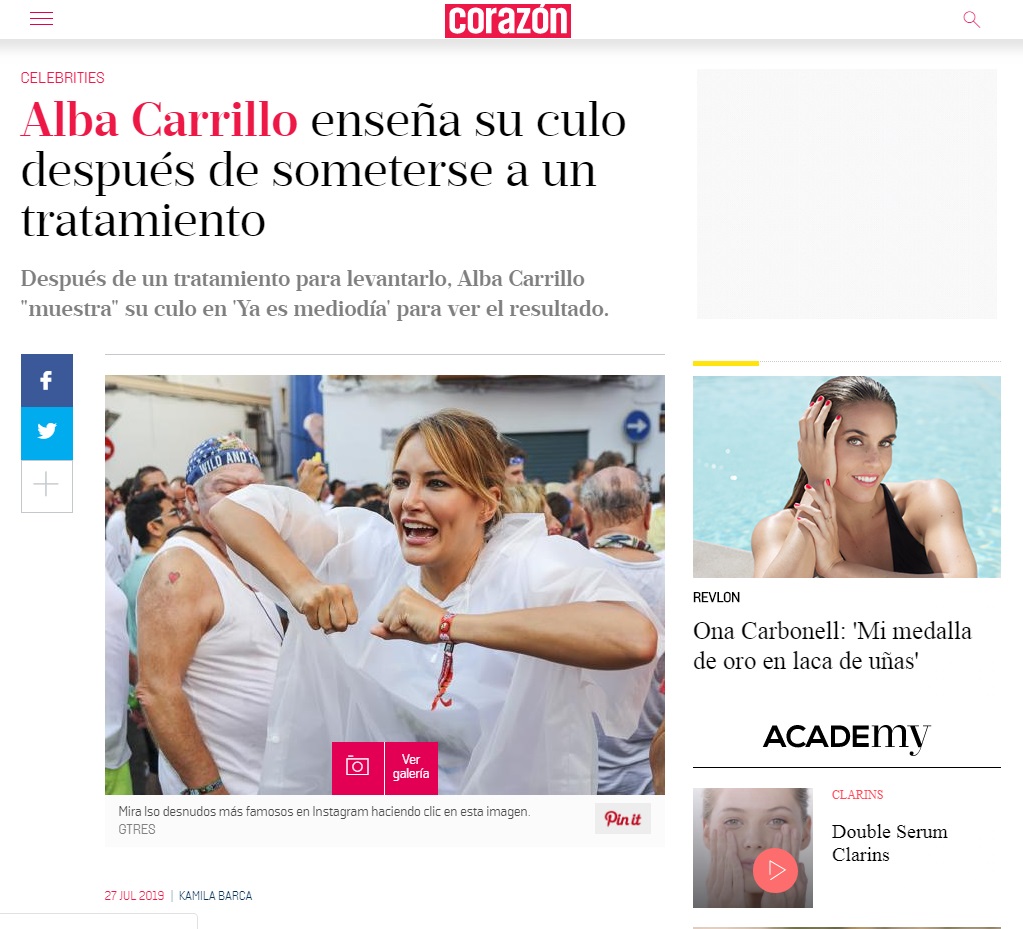 MUJER HOY: ALBA CARRILLO ENSEÑA SU CULO DESPUÉS DE SOMETERSE A UN TRATAMIENTO