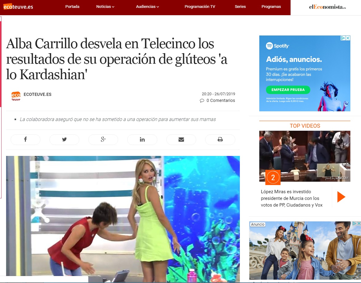 ABC: ALBA CARRILLO PRESUME ORGULLOSA DE SU NUEVO TRASERO EN TELEVISIÓN
