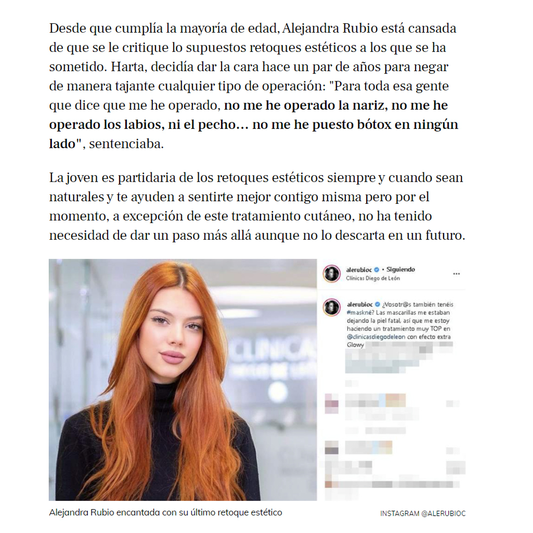 LECTURAS: ALEJANDRA RUBIO SE ESTRENA CON UN RETOQUE ESTÉTICO PARA LUCIR EL ROSTRO PERFECTO