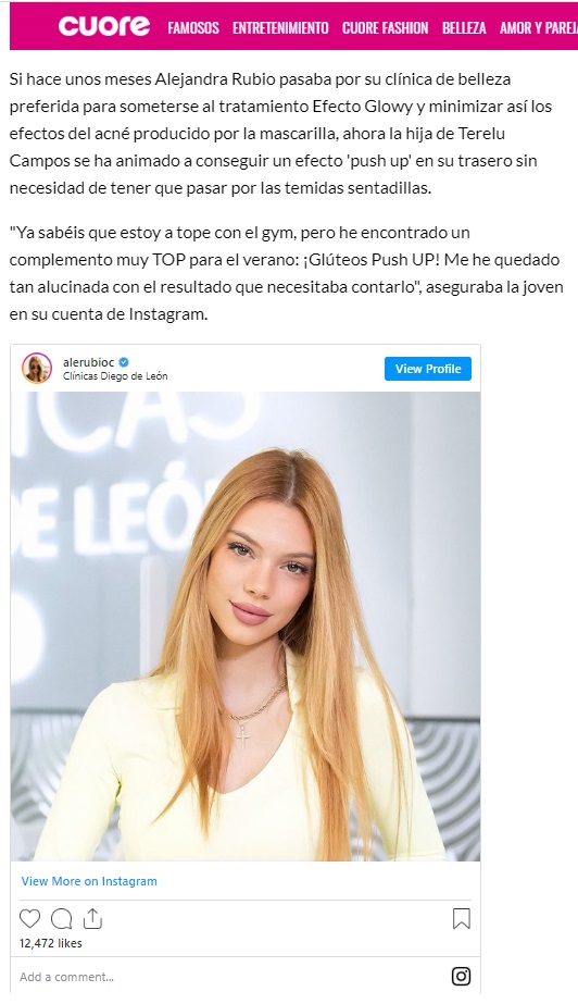 CUORE: ALEJANDRA RUBIO SE HA PUESTO GLÚTEOS “PUSH UP”