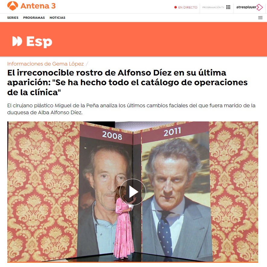 No obstante, el doctor De la Peña ha considerado que Díez se ha excedido en la cantidad de tratamientos de medicina estética, repercutiendo en un rostro artificial, que prácticamente le ha transformado en otra persona.
