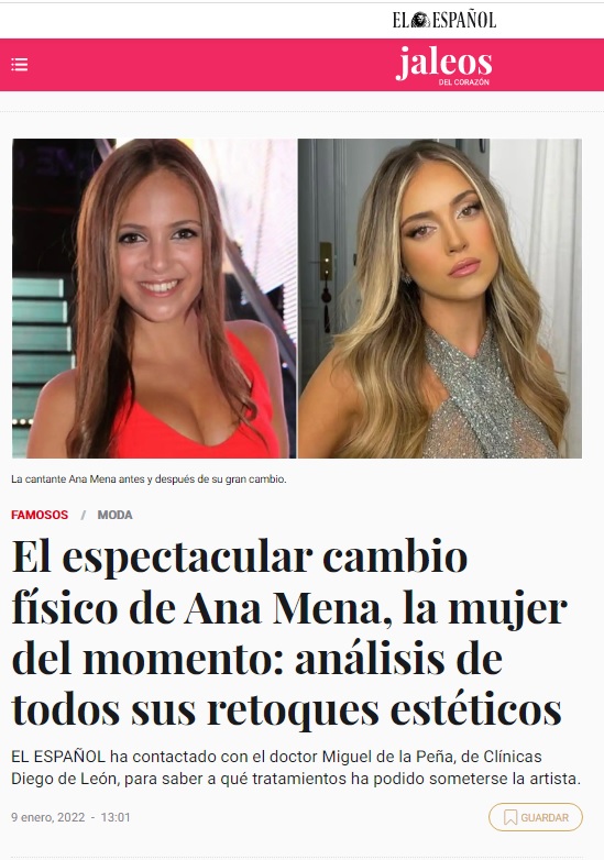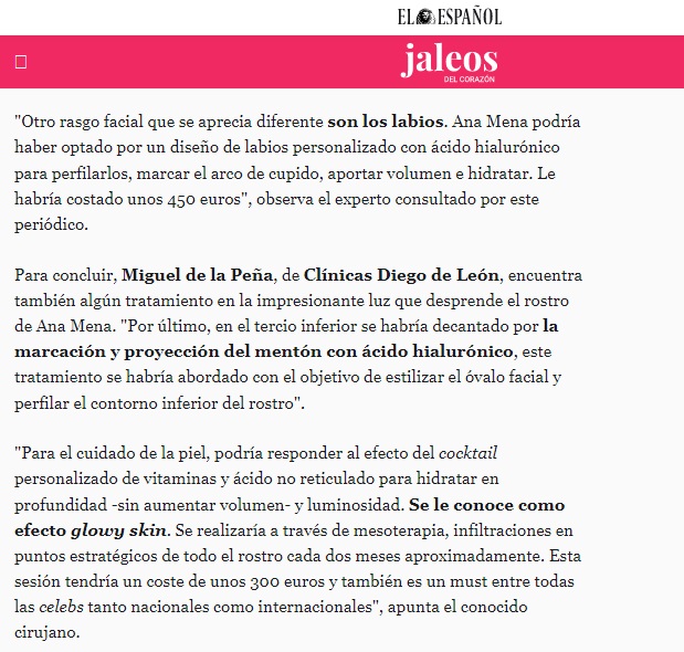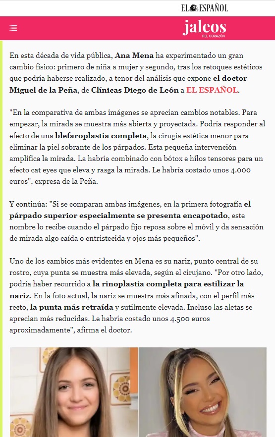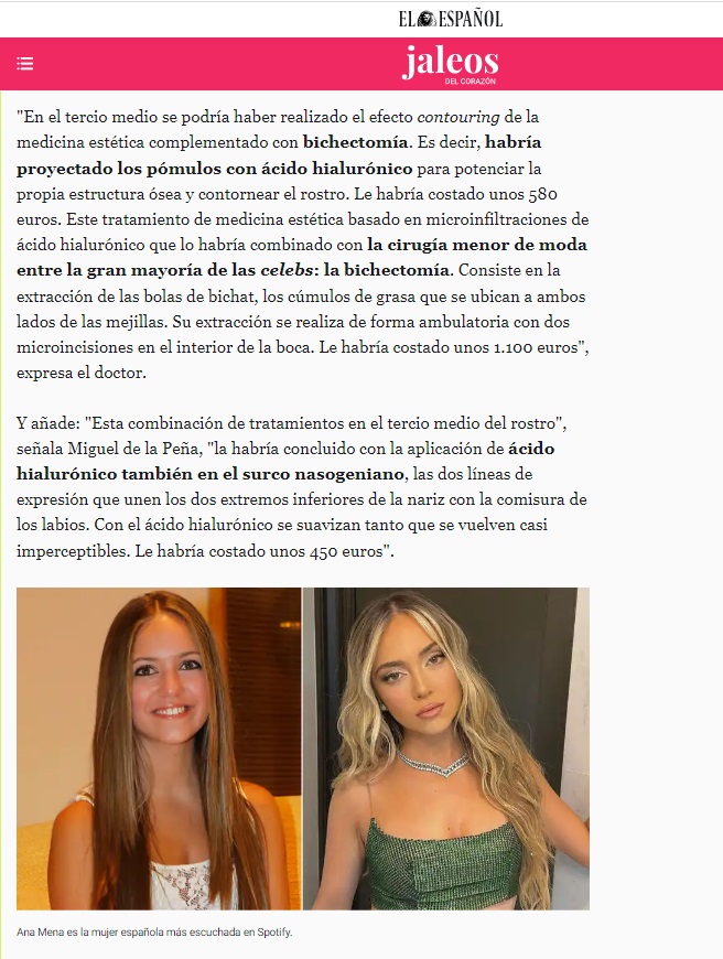 Nuestro director médico, el doctor Miguel de la Peña, ha analizado el rostro de Ana Mena para la sección JALEOS de EL ESPAÑOL.