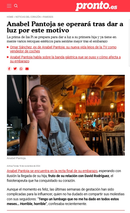 ANTENA3: El plan quirúrgico estético que tiene planeado Anabel Pantoja para después de dar a luz
