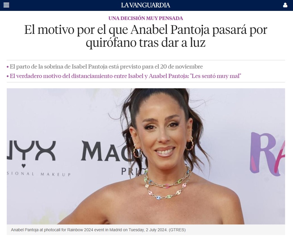 LA VANGUARDIA: El motivo por el que Anabel Pantoja pasará por quirófano tras dar a luz