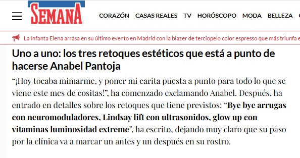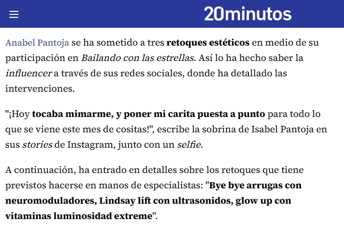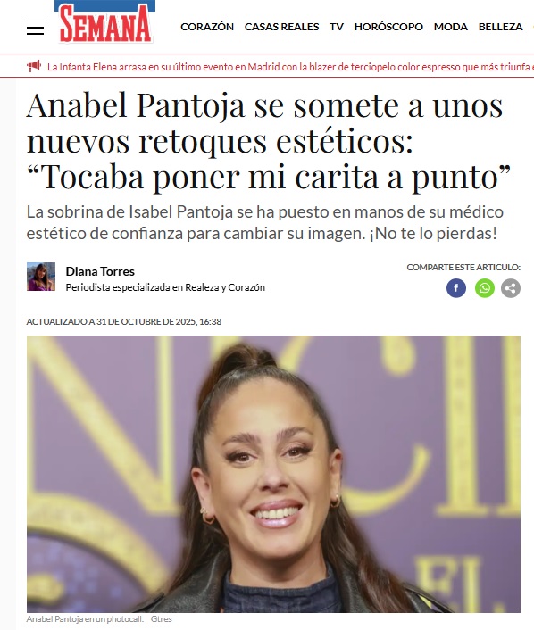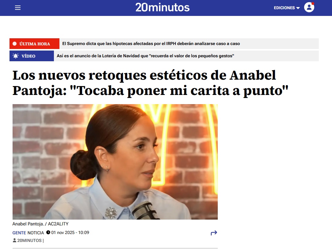 20 MINUTOS: Los nuevos retoques de Anabel Pantoja: “Tocaba poner mi carita a punto”
