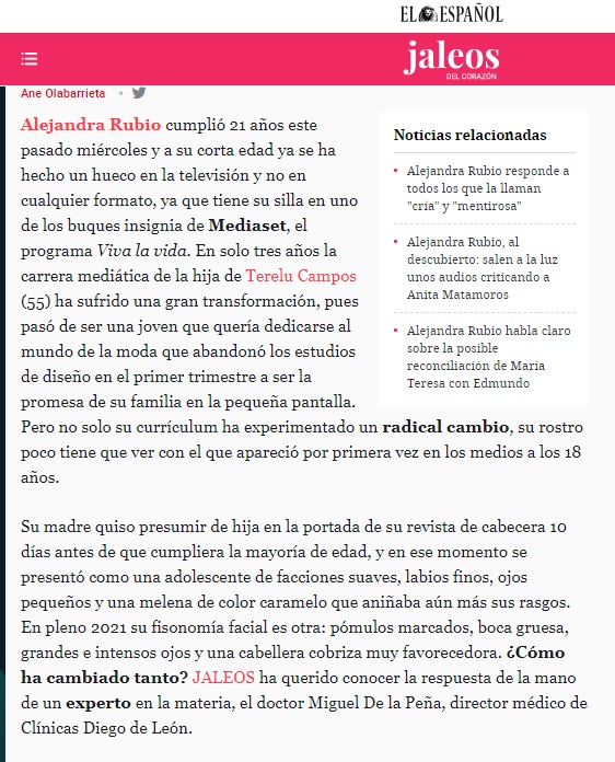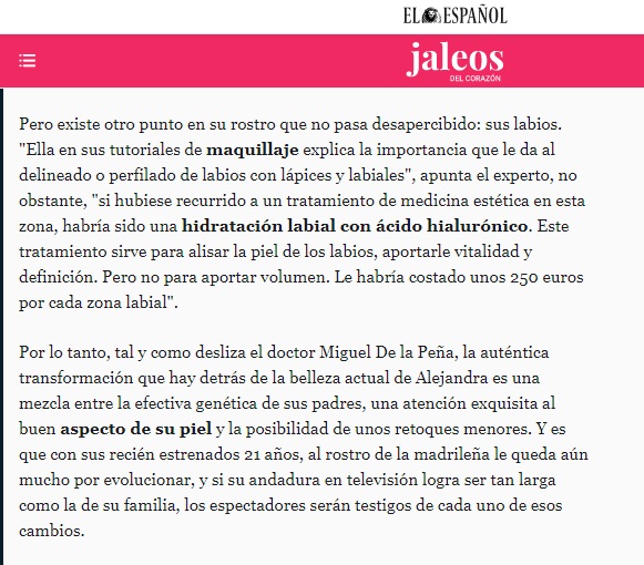 Como asegura nuestro doctor De la Peña con rotundidad: “la diferencia entre ambas imágenes responde más al paso del tiempo que a la existencia de retoques estéticos”.