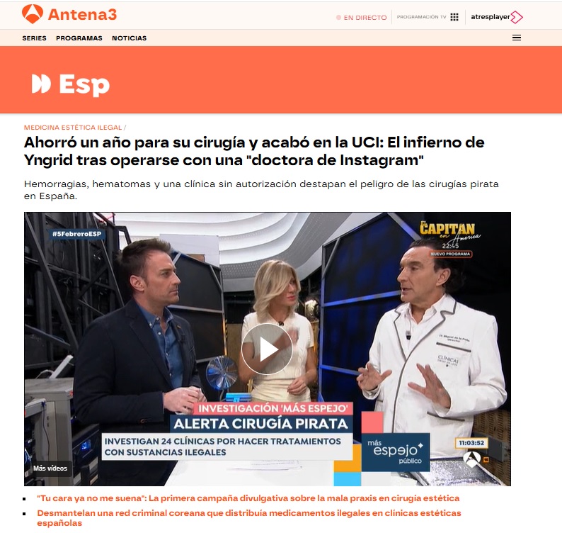Nuestro CEO y director médico, el doctor Miguel de la Peña, ha revelado en el programa Espejo Público, de Antena 3, todo lo que debes saber para que detectes si te encuentras en una clínica estética que cumple con todas las garantías.