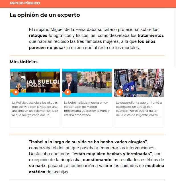 Nuestro CEO, el doctor Miguel de la Peña, ha analizado el rostro de Isabel Preysler y sus hijas Tamara Falcó y Ana Boyer.