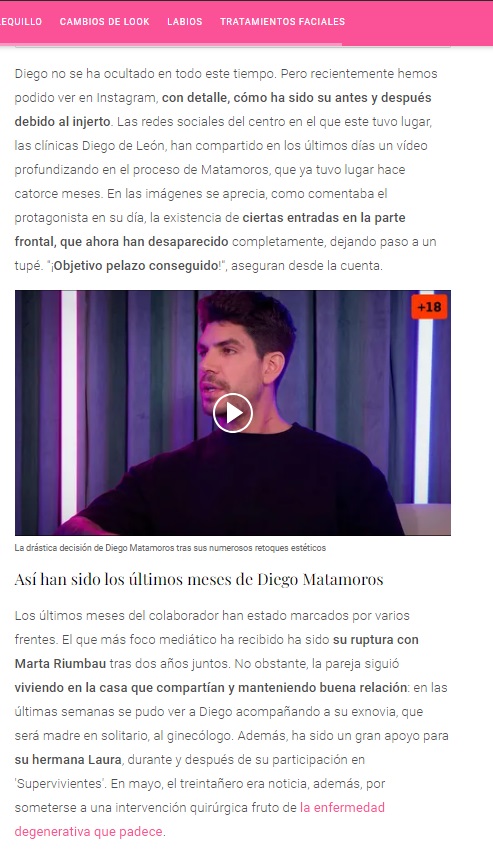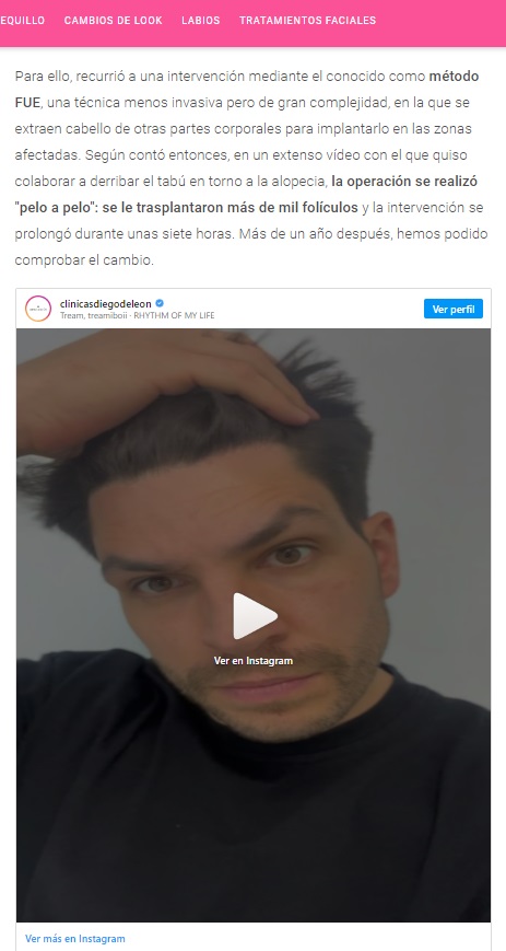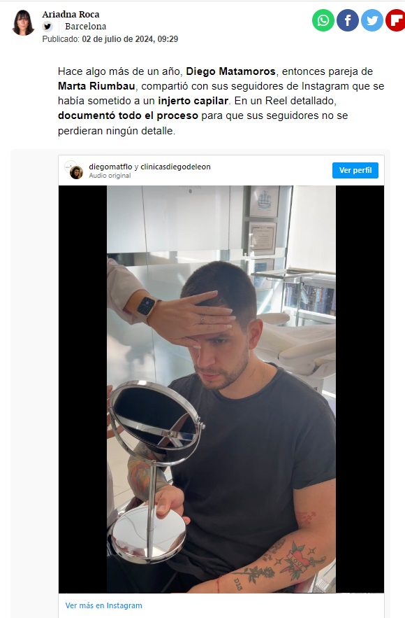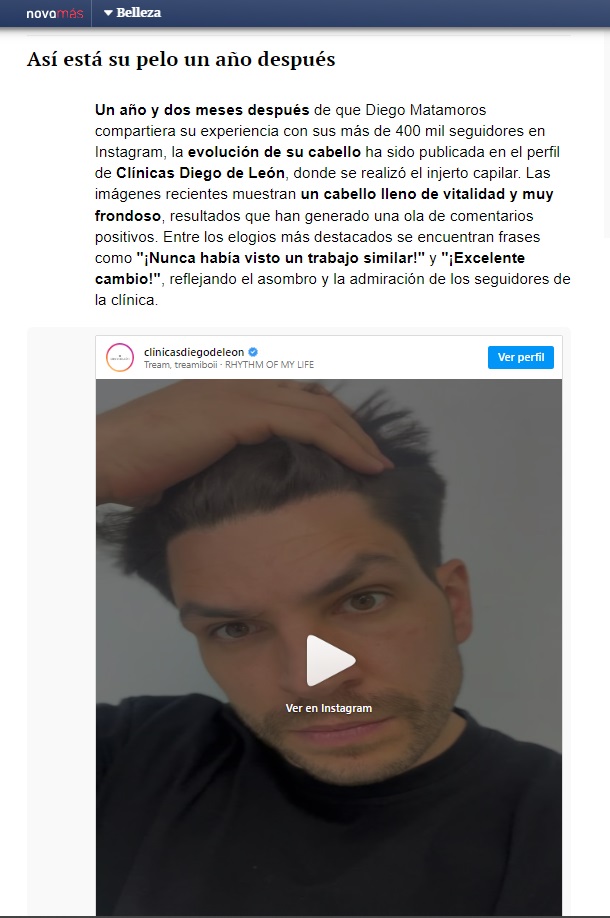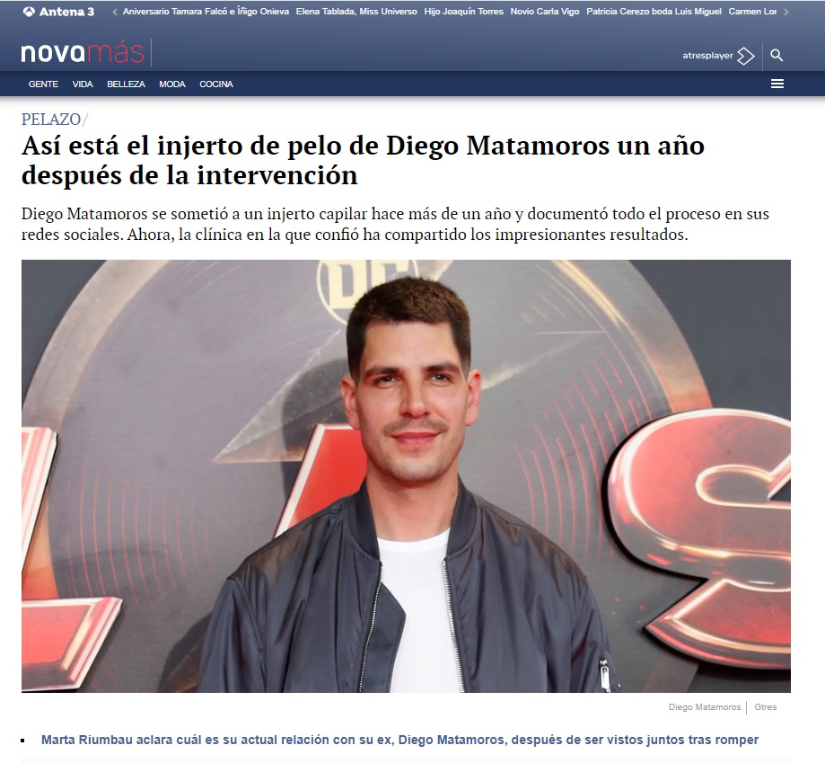 Ha pasado un año desde que Diego Matamoros pasase por quirófano para realizarse un injerto capilar.