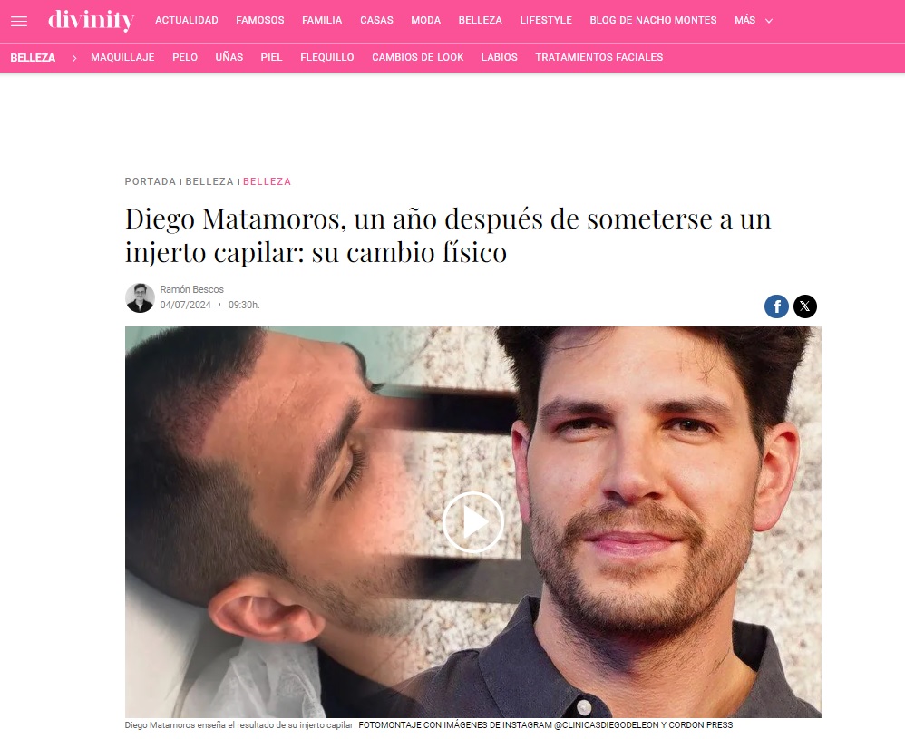 En DIVINITY: Diego Matamoros, un año después de someterse a un injerto capilar: su cambio físico