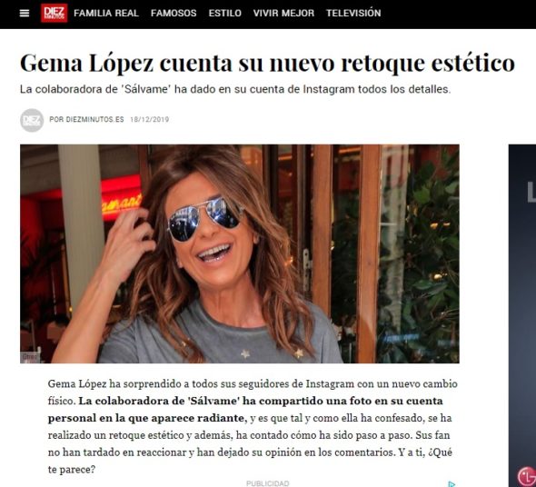 DIEZ MINUTOS: Gema López cuenta su nuevo retoque estético