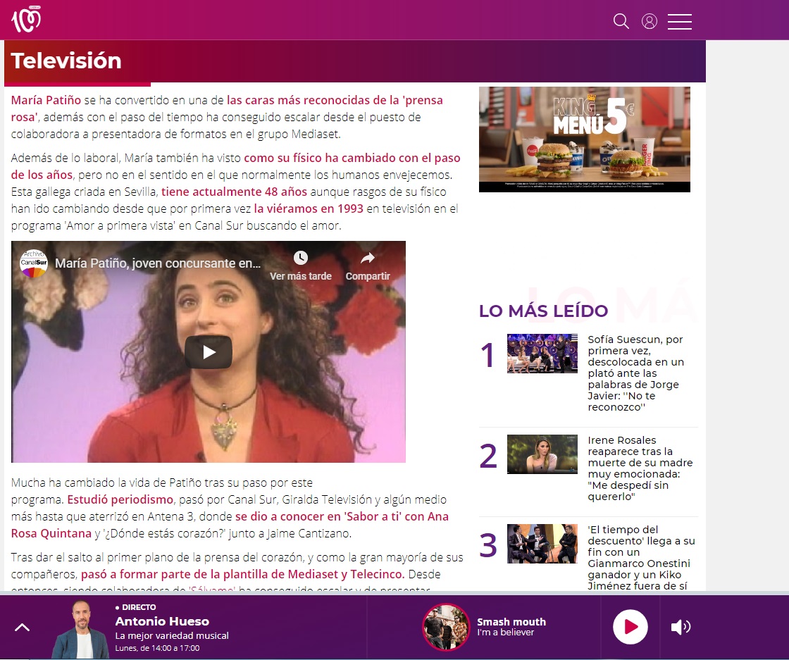 El portal de una de nuestras emisoras de radio favoritas -CADENA 100- ha realizado un #BeautyFlashback de nuestra querida periodista María Patiño.