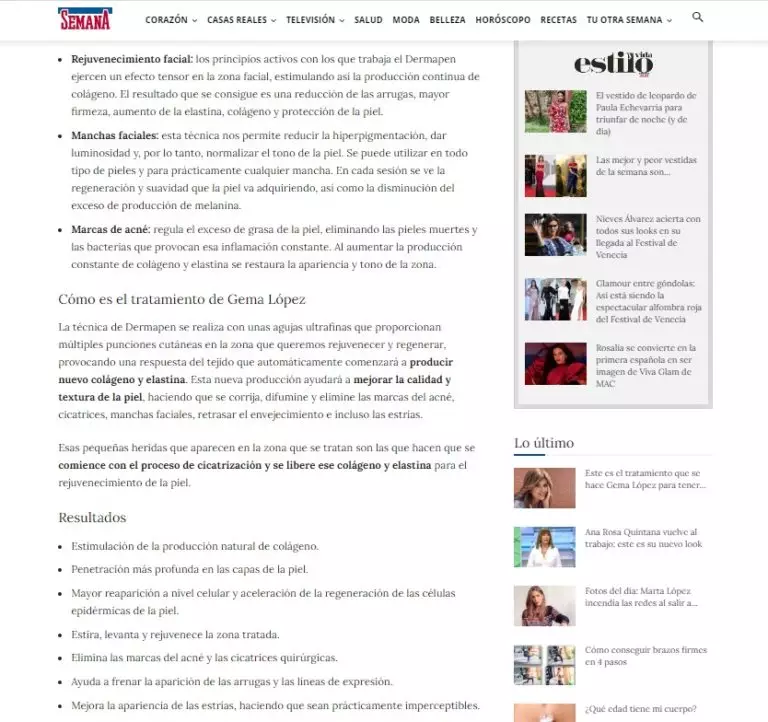 Así que el doctor Miguel de la Peña, director médico de Clínicas Diego de León, le recomendó los siguientes tratamientos que también ha recogido la revista SEMANA en este maravilloso repor para que no te pierdas nada.