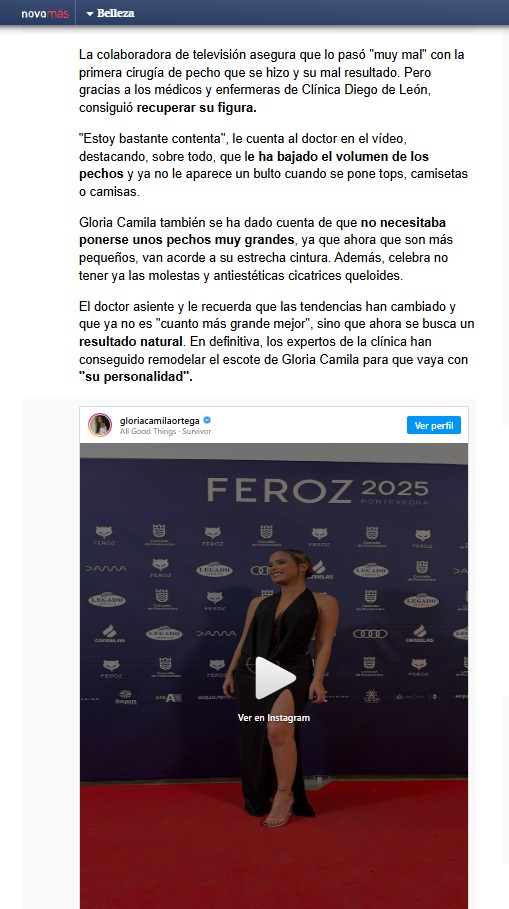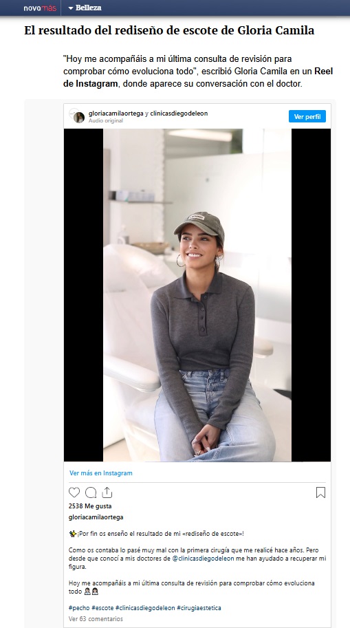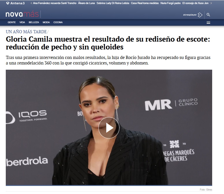 En ANTENA 3: Gloria Camila muestra el resultado de su rediseño de escote: reducción de pecho y sin queloides