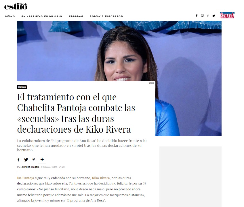 REVISTA SEMANA: EL TRATAMIENTO CON EL QUE ISA PANTOJA COMBATE LAS SECUELAS TRAS LAS DURAS DECLARACIONES DE KIKO RIVERA
