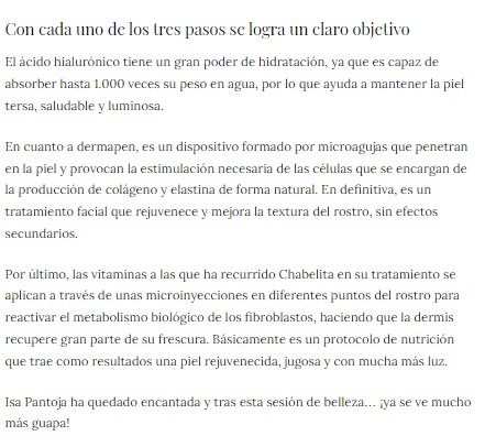 ¿Resultado? Desde su realización Isa ya notaba el resultado que mejorará progresivamente durante las dos primeras semanas.