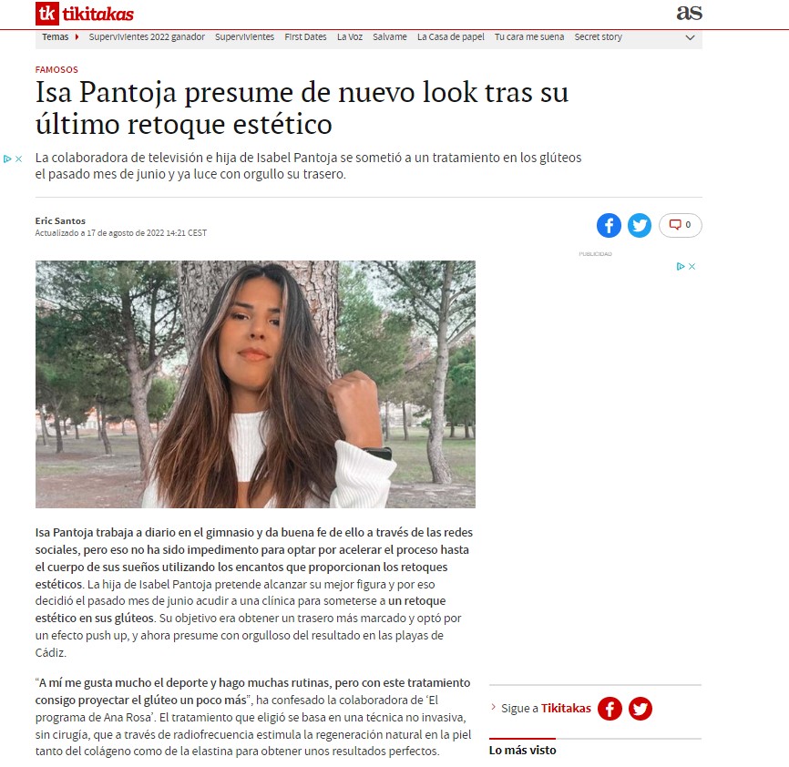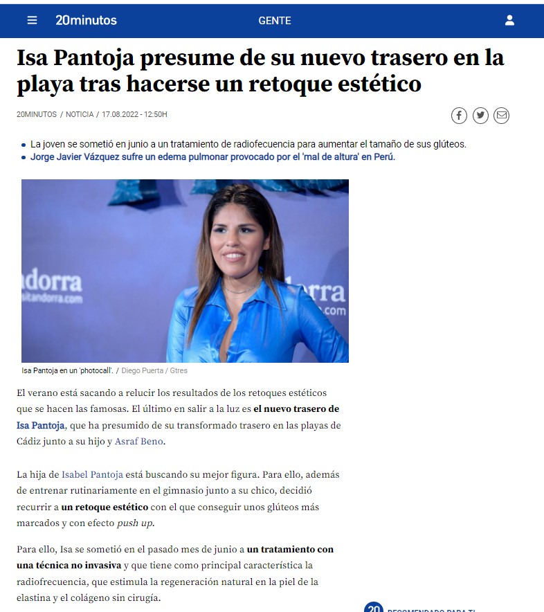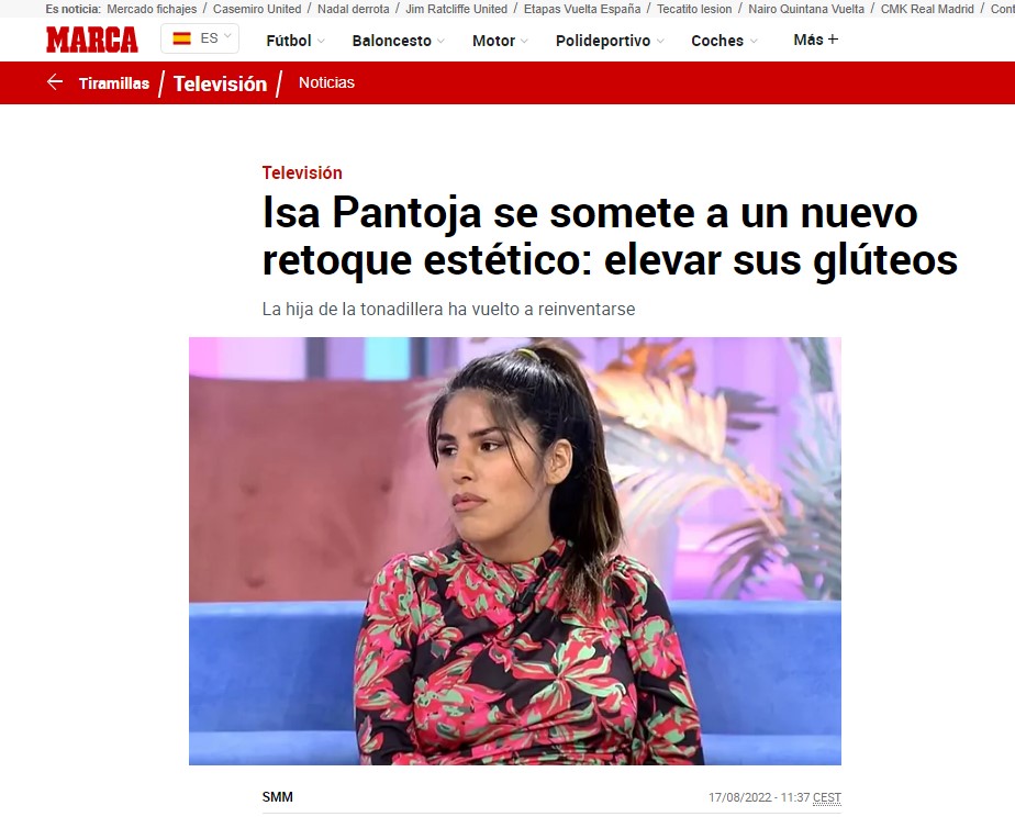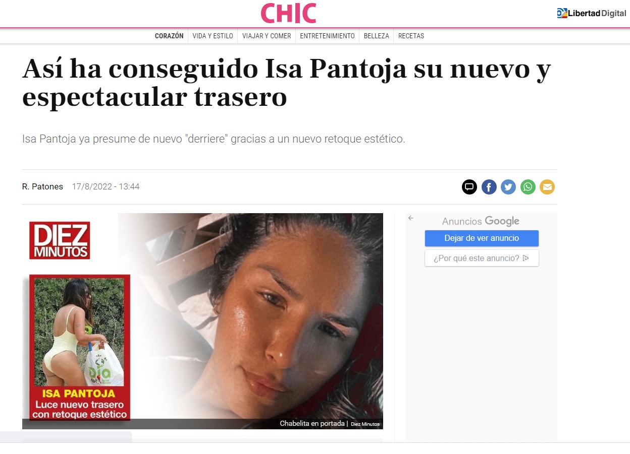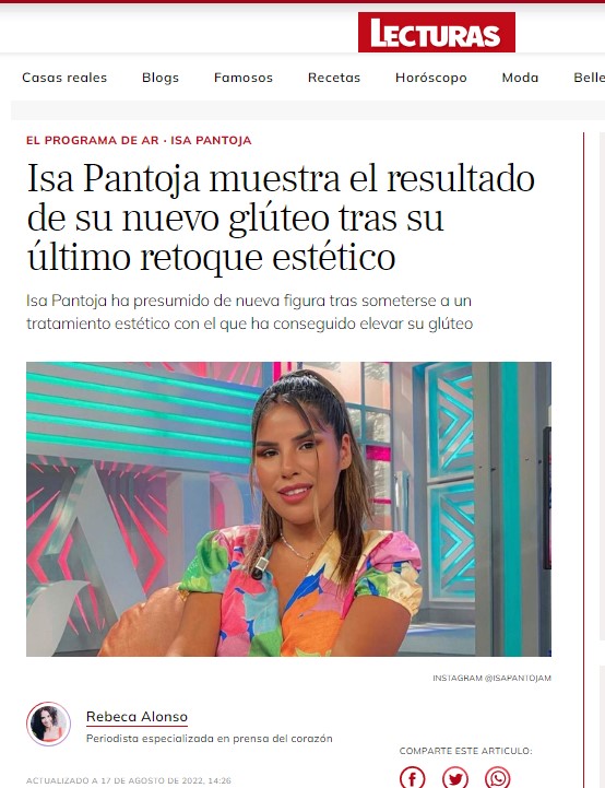 EN PORTADA DE LA REVISTA DIEZ MINUTOS: ISA PANTOJA LUCE NUEVO TRASERO CON RETOQUE ESTÉTICO