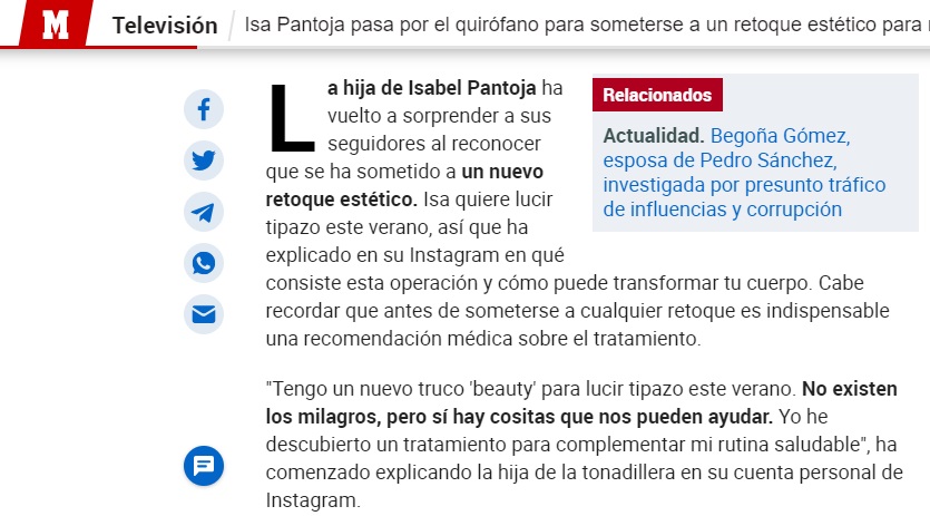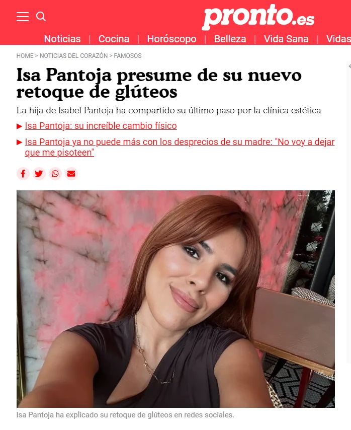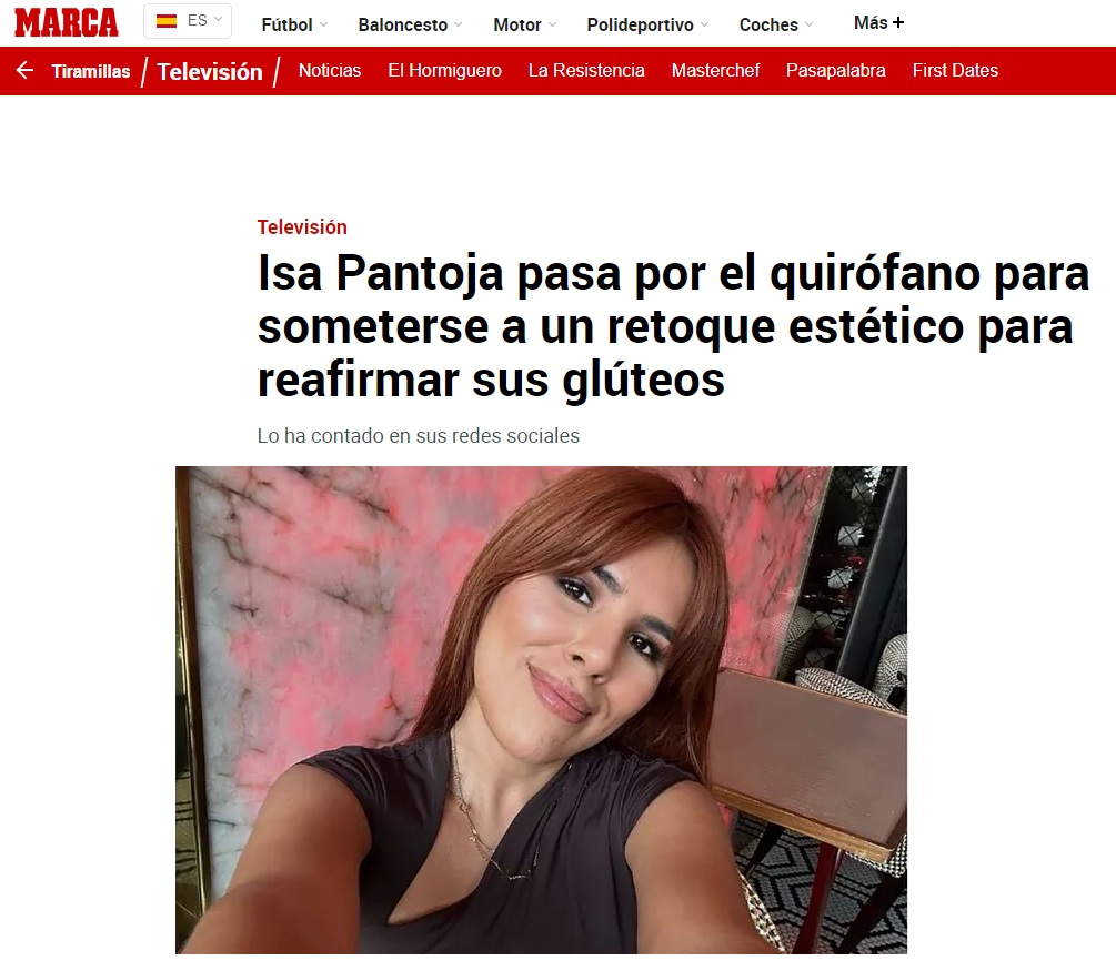 MARCA: Isa Pantoja pasa por el quirófano para someterse a un retoque estético para reafirmar sus glúteos