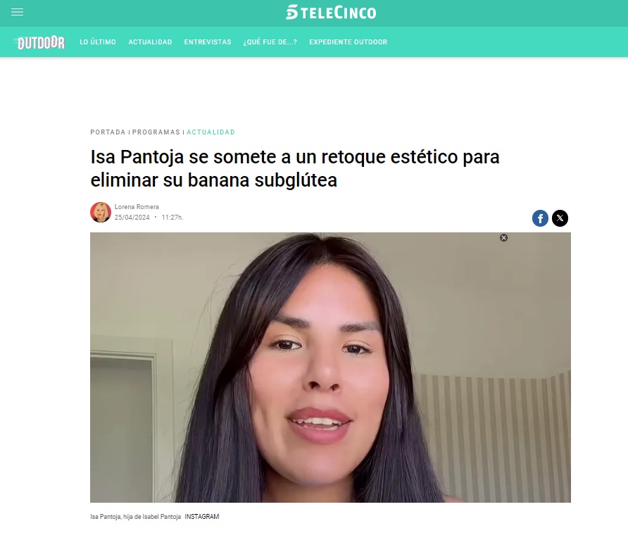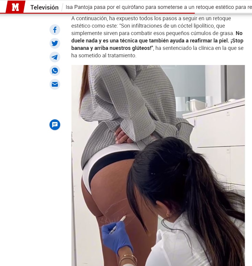 En Telecinco: Isa Pantoja se somete a un retoque para eliminar su banana subglútea