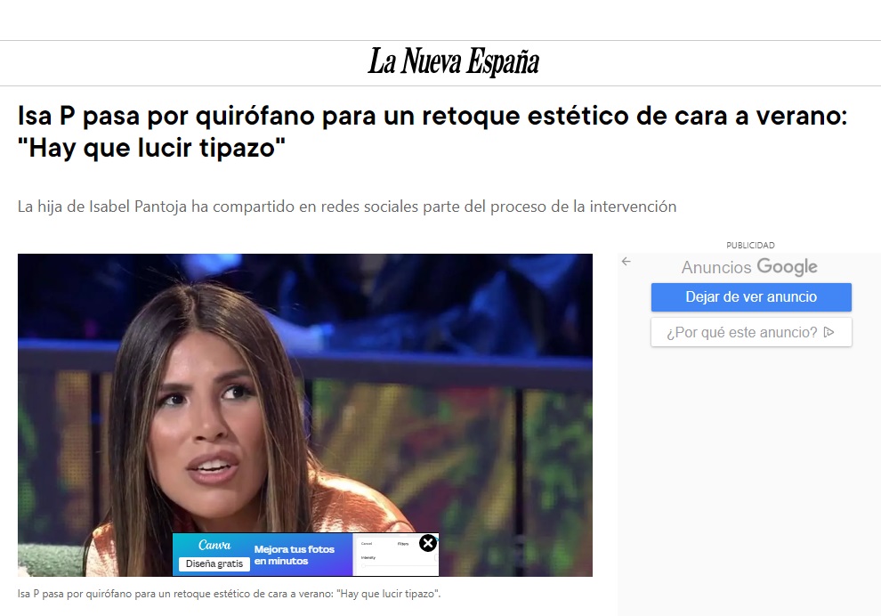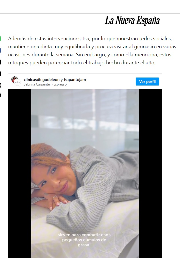 LA NUEVA ESPAÑA- Isa P pasa por quirófano para un retoque estético de cara a verano: “Hay que lucir tipazo”