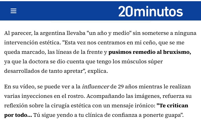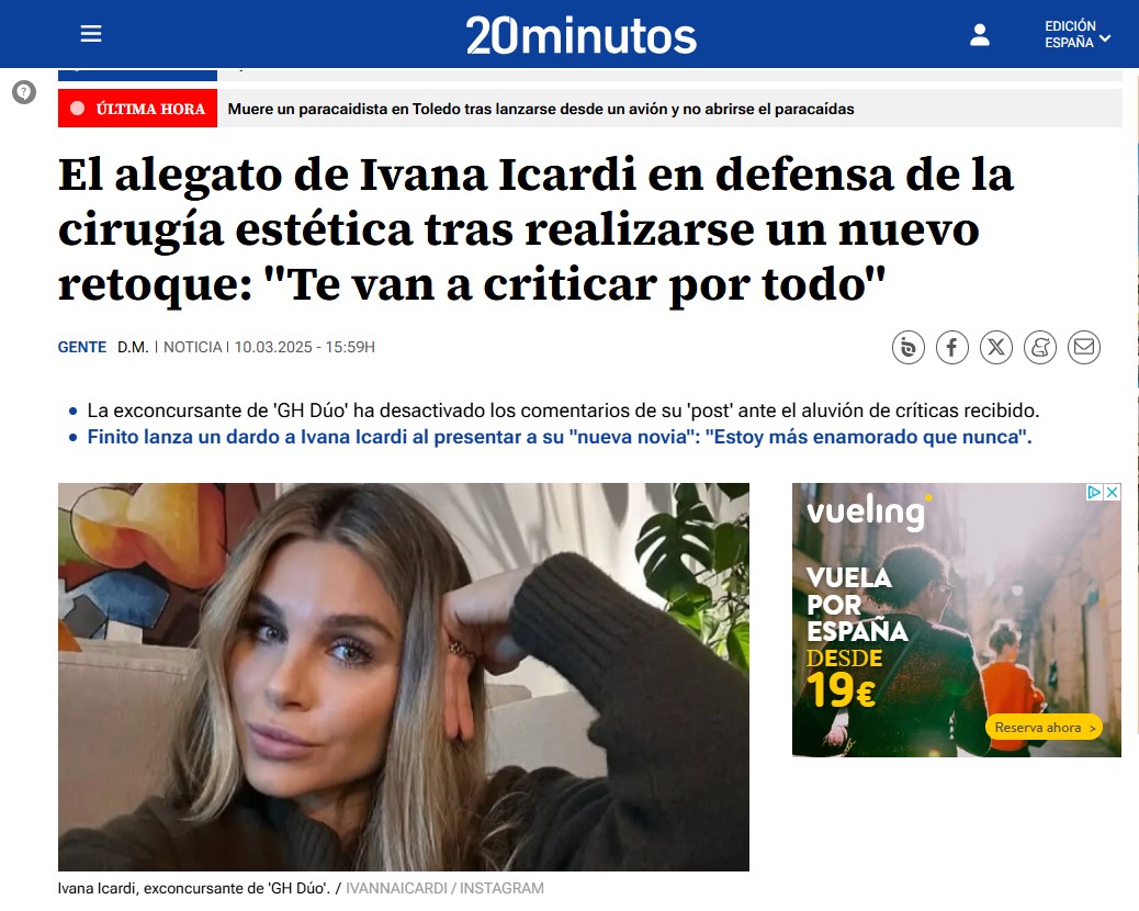 20 MINUTOS: El alegato de Ivana Icardi en defensa de la cirugía estética tras realizarse un nuevo retoque: “Te van a criticar por todo”
