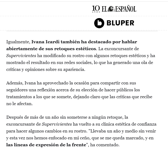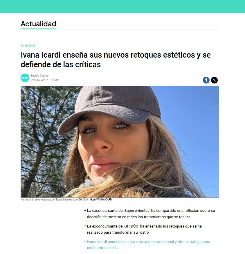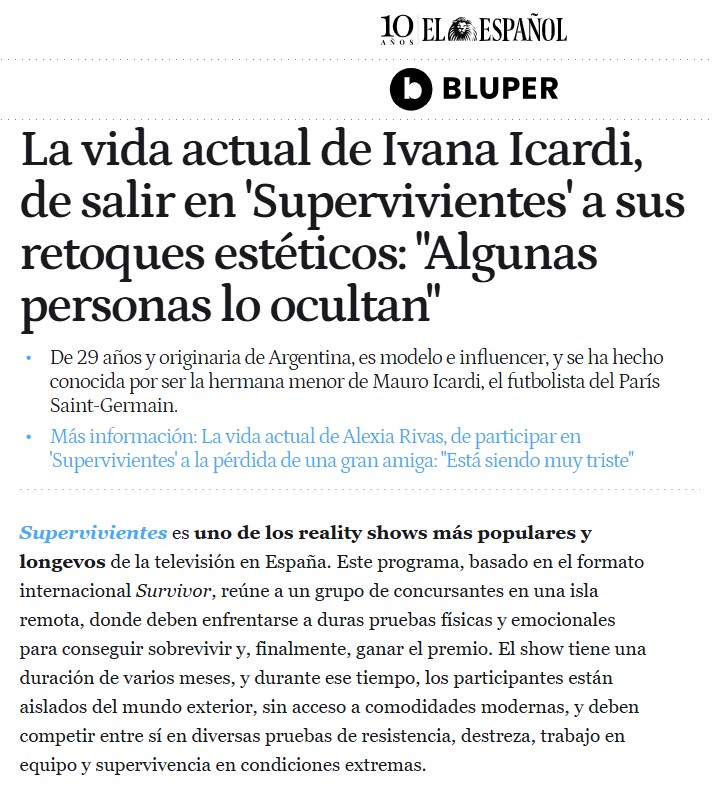 EL ESPAÑOL: La vida actual de Ivana Icardi, de salir en “Supervivientes” a sus retoques estéticos