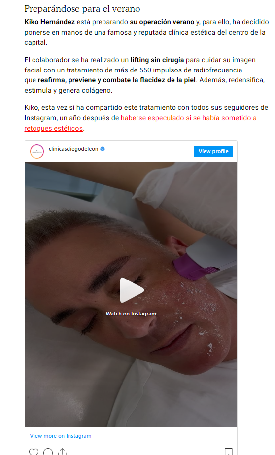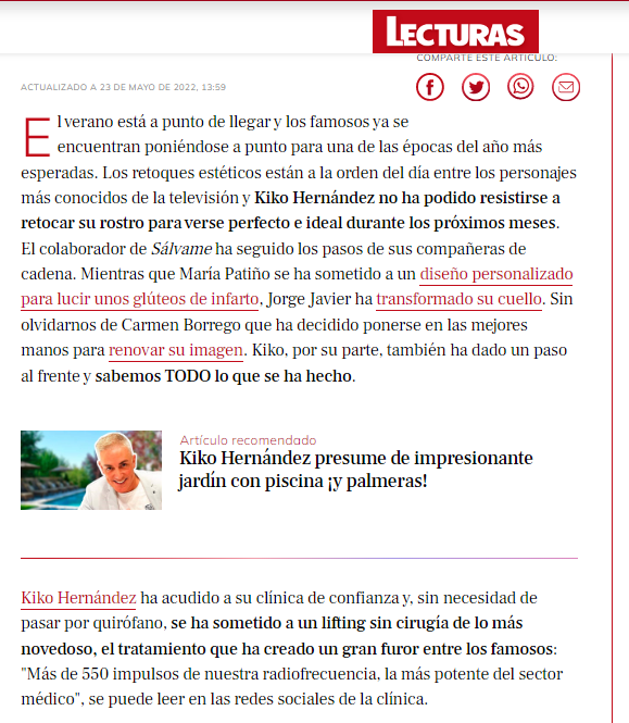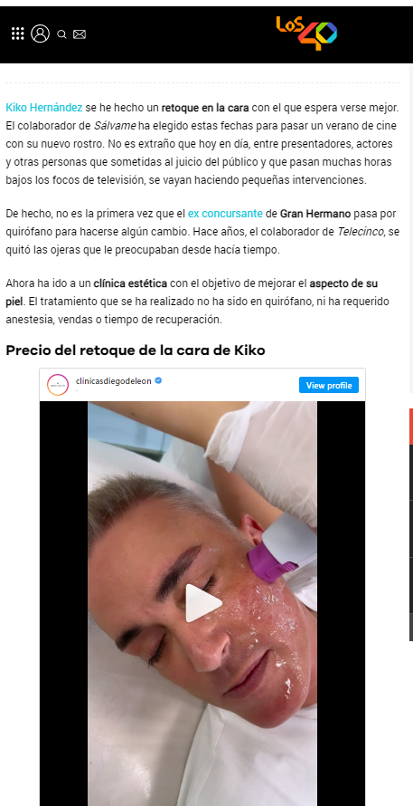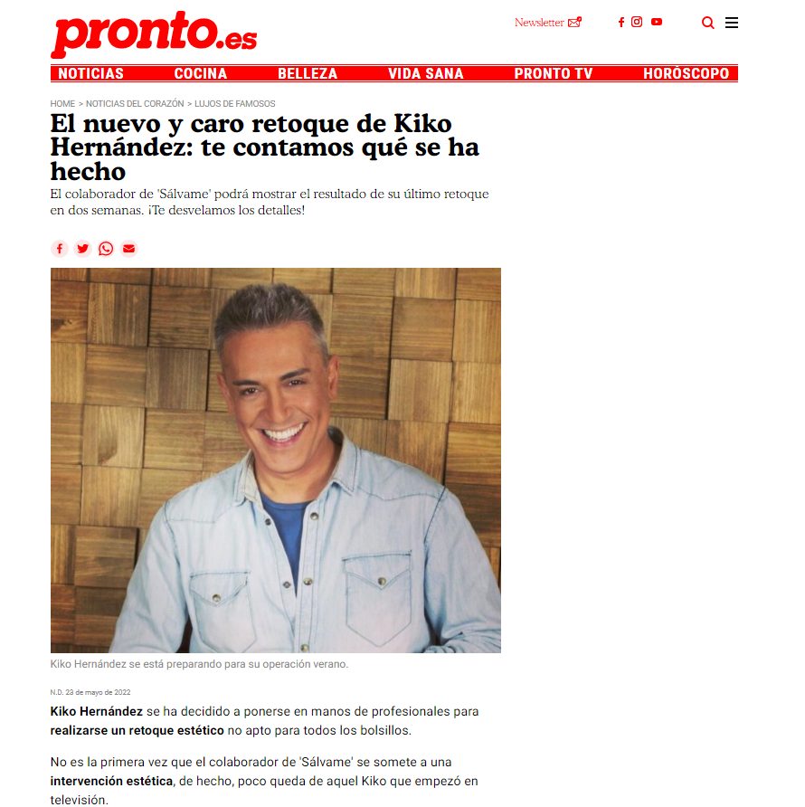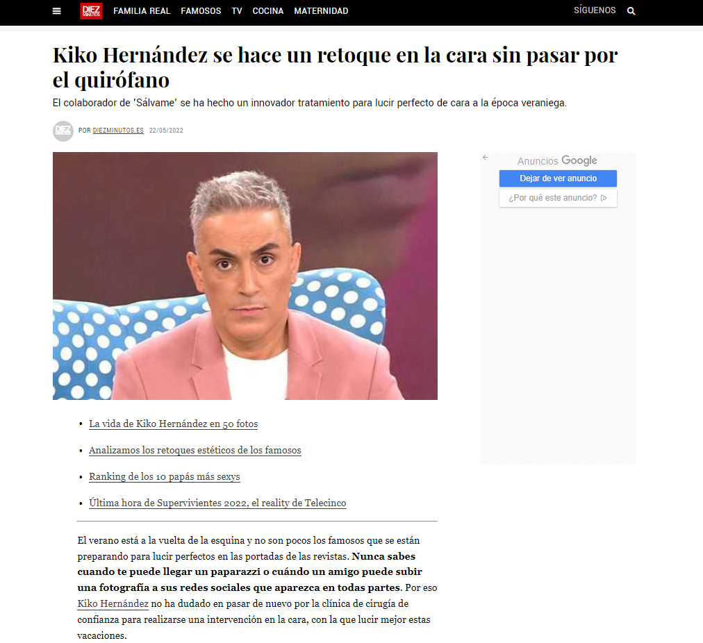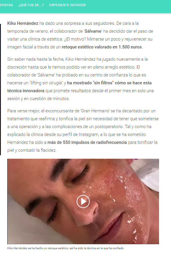 Nuestro querido paciente Kiko Hernández se ha hecho un tratamiento tan revolucionario que no ha tardado en llegar a todos los medios de comunicación.