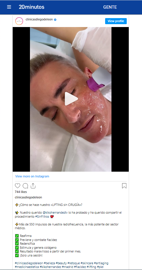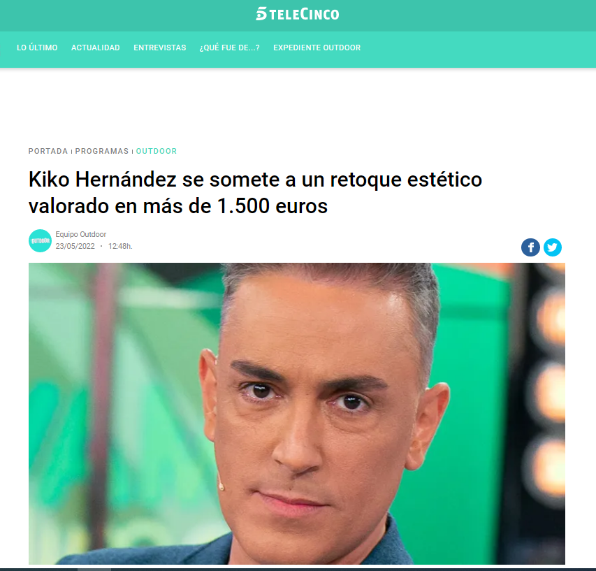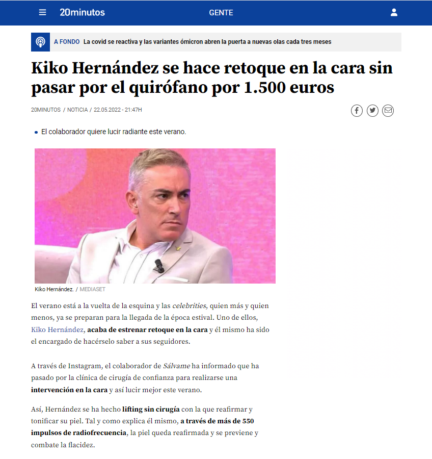 20 MINUTOS: KIKO HERNÁNDEZ SE HACE RETOQUE EN LA CARA SIN PASAR POR EL QUIRÓFANO POR 1.500 EUROS