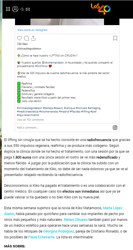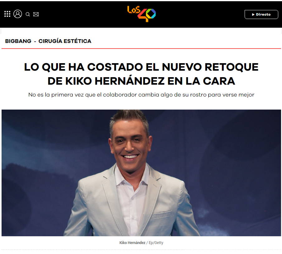 40 PRINCIPALES: LO QUE HA COSTADO EL NUEVO RETOQUE DE KIKO HERNÁNDEZ EN LA CARA