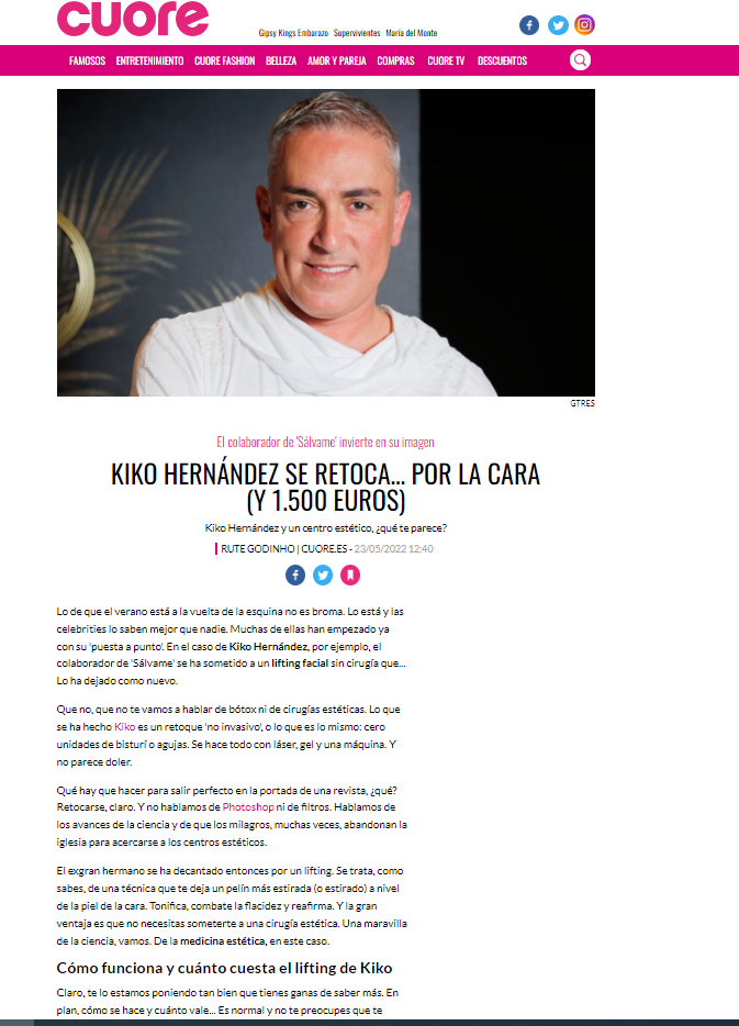 CUORE: KIKO HERNÁNDEZ SE RETOCA …POR LA CARA (Y1.500 EUROS)