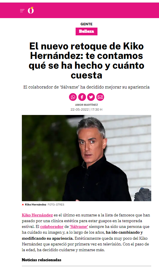 LA RAZÓN: EL NUEVO RETOQUE DE KIKO HERNÁNDEZ: te contamos qué se ha hecho y cuánto cuesta