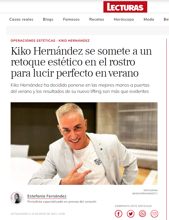 LECTURAS: KIKO HERNÁNDEZ SE SOMETE A UN RETOQUE ESTÉTICO EN EL ROSTRO PARA LUCIR PERFECTO EN VERANO