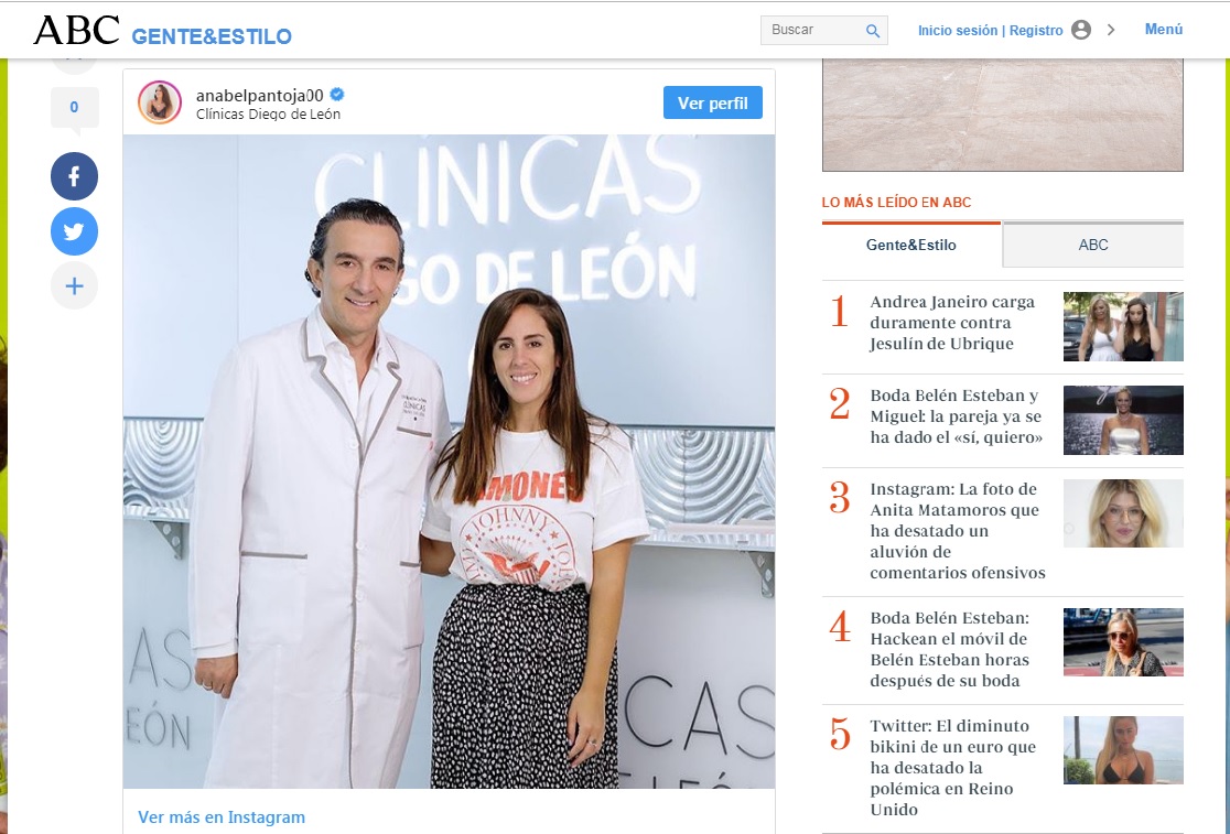Los medios de comunicación no han tardado en publicar la última puesta a punto tan espectacular de Anabel Pantoja en nuestras clínicas.