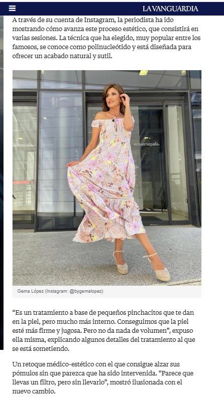 LA VANGUARDIA- El tratamiento médico-estético al que se ha sometido Gema López para regenerar su rostro: “Parece que llevas un filtro”