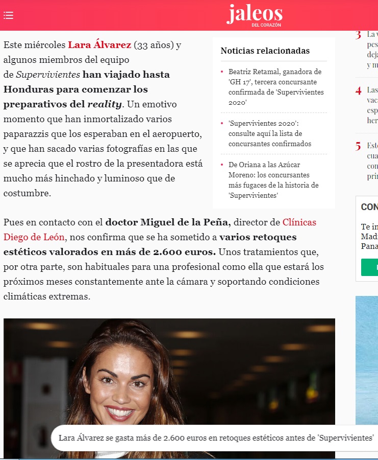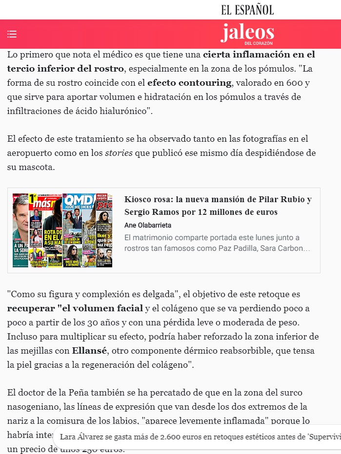 La redacción de JALEOS, la sección de EL ESPAÑOL, se ha puesto en contacto con nuestro doctor Miguel de la Peña para analizar el rostro de la presentadora.