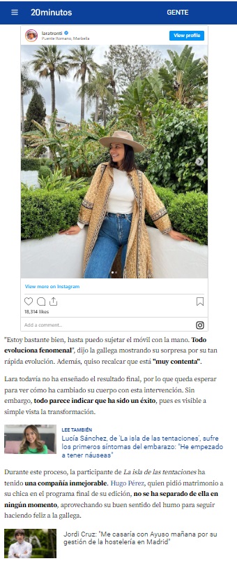 20 MINUTOS: LARA TRONTI, DE “LA ISLA DE LAS TENTACIONES”, ENCANTADA CON SU AUMENTO DE PECHO