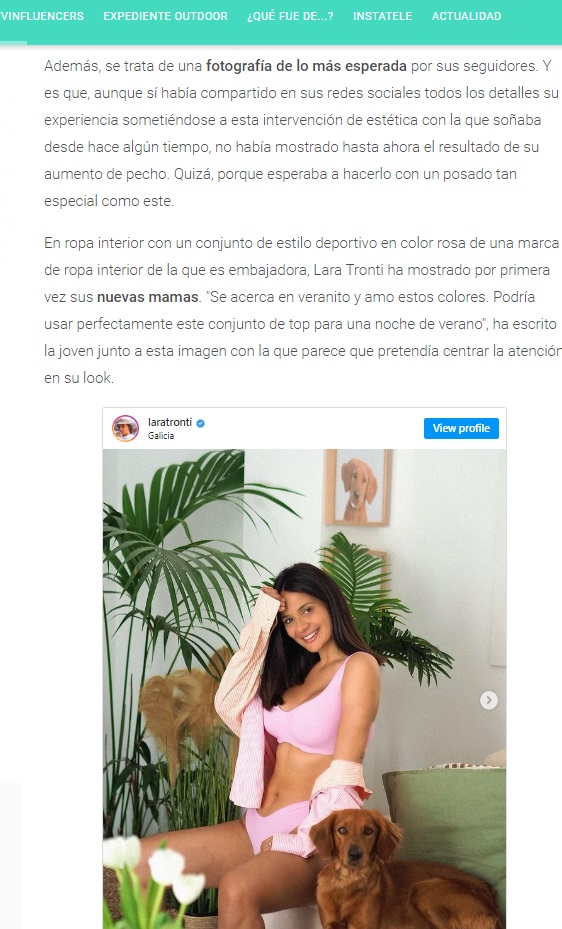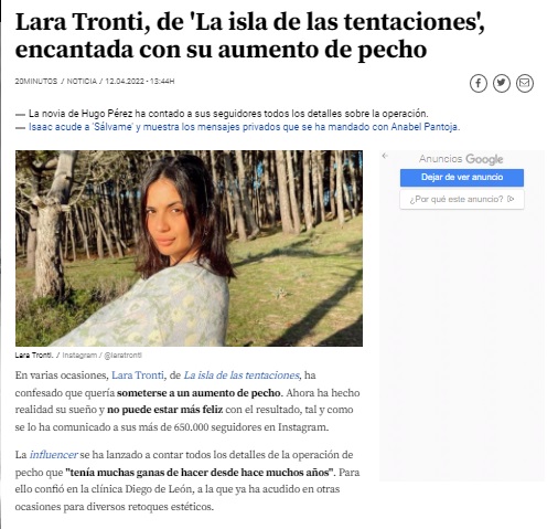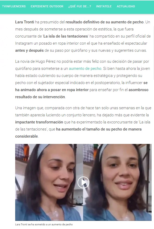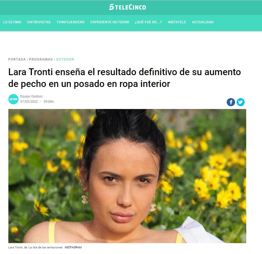 La operación de pecho de LARA TRONTI también ha llegado a la prensa.
