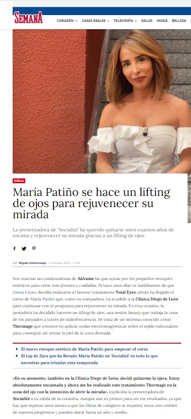 SEMANA: MARÍA PATIÑO SE HACE UN LIFTING DE OJOS PARA REJUVENECER LA MIRADA