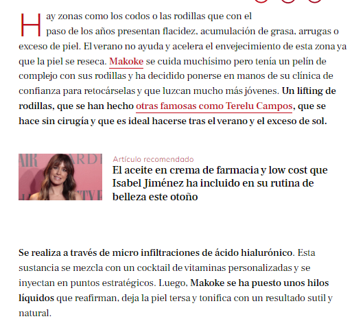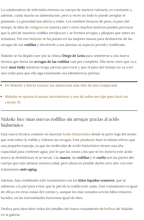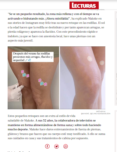 LECTURAS: MAKOKE MUESTRA ENCANTADA EL RESULTADO DE SU NUEVO RETOQUE PARA REJUVENECER SUS RODILLAS