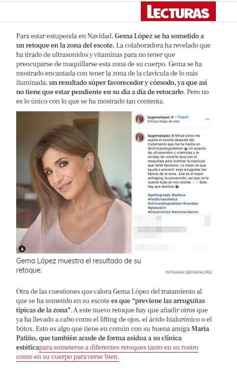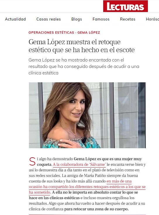 LECTURAS: GEMA LÓPEZ MUESTRA EL RETOQUE ESTÉTICO QUE SE HA HECHO EN EL ESCOTE