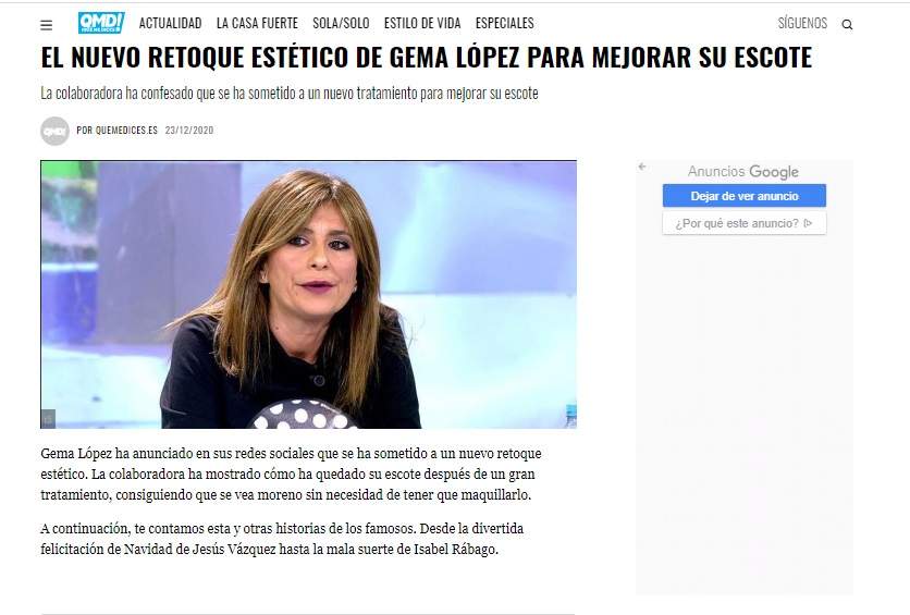 REVISTA QUÉMEDICES!: EL NUEVO RETOQUE ESTÉTICO DE GEMA LÓPEZ PARA MEJORAR SU ESCOTE
