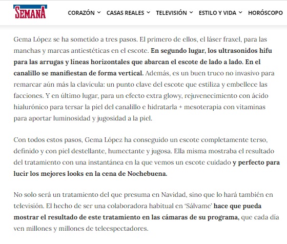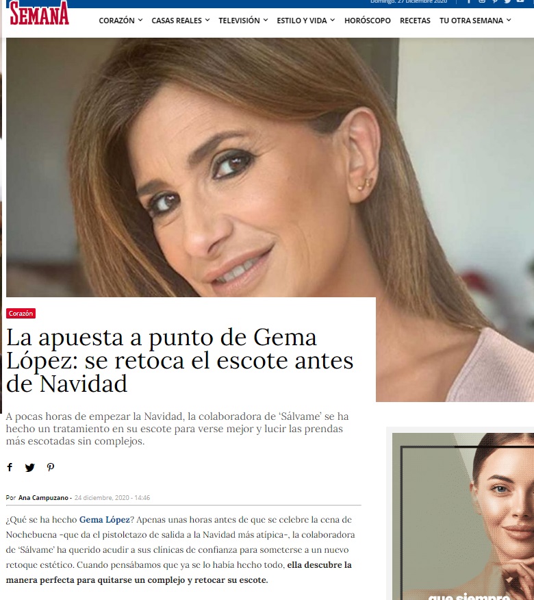 REVISTA SEMANA: LA PUESTA A PUNTO DE GEMA LÓPEZ: SE RETOCA EL ESCOTE ANTES DE NAVIDAD