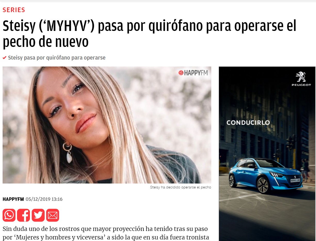 TELECINCO: STEISY COMUNICA QUE SE OPERA EL PECHO. “ES POR UN TEMA DE SALUD”