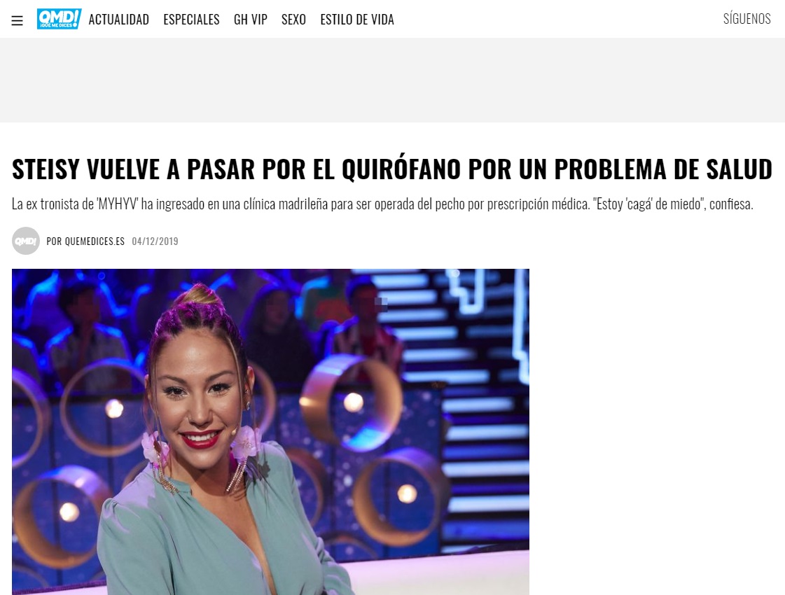 Revista QMD!: STEISY VUELVE A PASAR POR EL QUIRÓFANO POR UN PROBLEMA DE SALUD