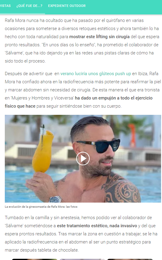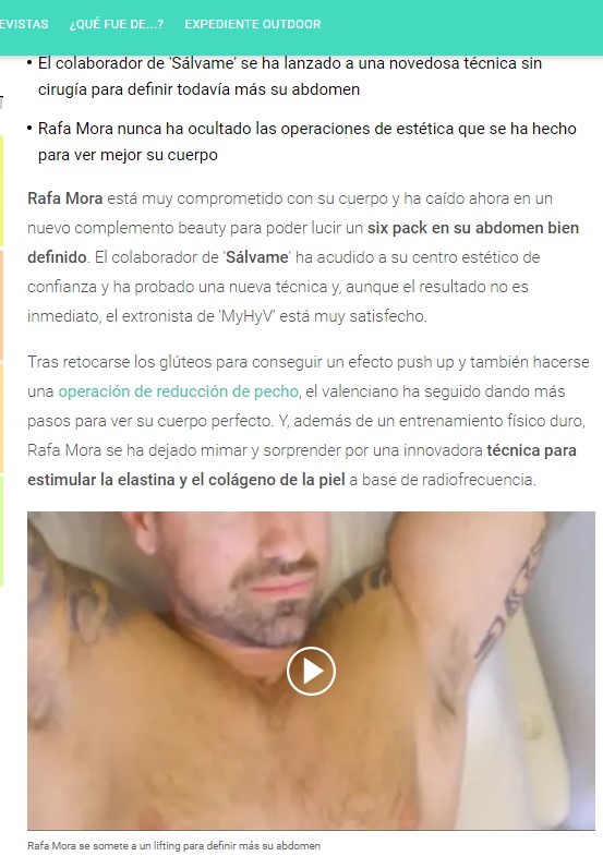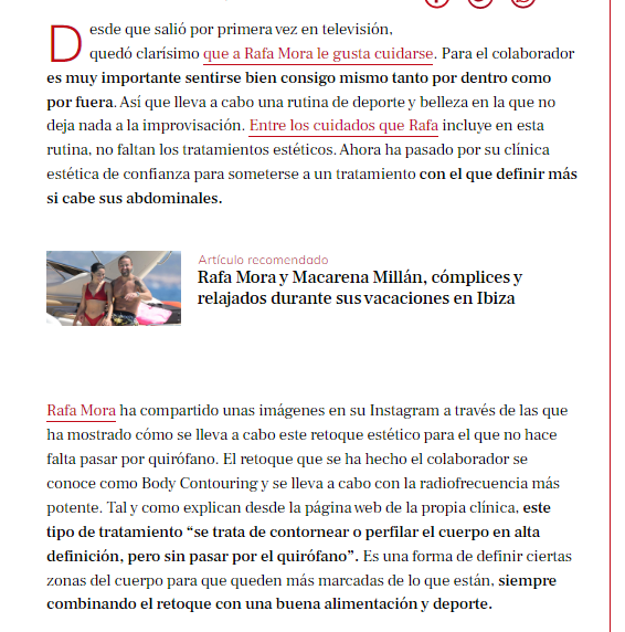 LECTURAS: RAFA MORA SE SOMETE A UN RETOQUE ESTÉTICO PARA PRESUMIR DE ABDOMINALES
